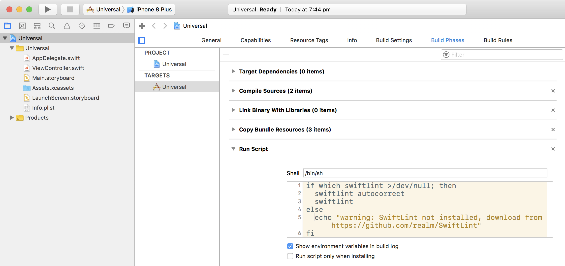 The next thing to do to make your life easier is to add SwiftLint to your Xcode project so that it can run automatically whenever you do a build.